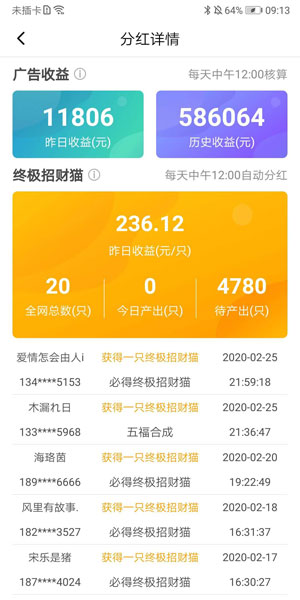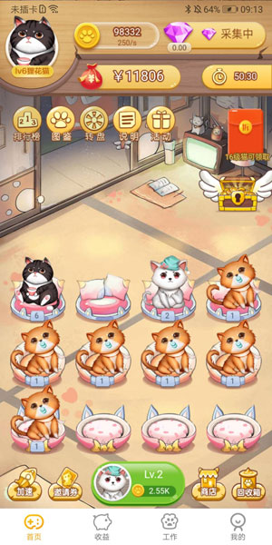 安卓版下载 大小:6.67 MB 下载:3256次 撸猫有财 支 持:安卓 分 类:手机软件 大 小:6.67 MB 版 本:1.0.1 评 分: 开发者:北京美云科技有限公司 下载量:3256次 发 布:2020-01-05 00:00 手机扫码免费下载 #撸猫有财截图 #撸猫有财简介 撸猫有财是北京美云科技推出的一款合成赚钱的小游戏,让你玩游戏的同时也能赚零花钱,合成一只终极招财猫预计每天享受约300元左右的分红,完全0投入仅需每天动动手指头,快来一起赚钱吧。 新手红包 登陆就送新手大红包,猫达到指定等级还可以领大红包,0.3元就能提现,秒到账。 若需要邀请码请填写:M88NTgYH